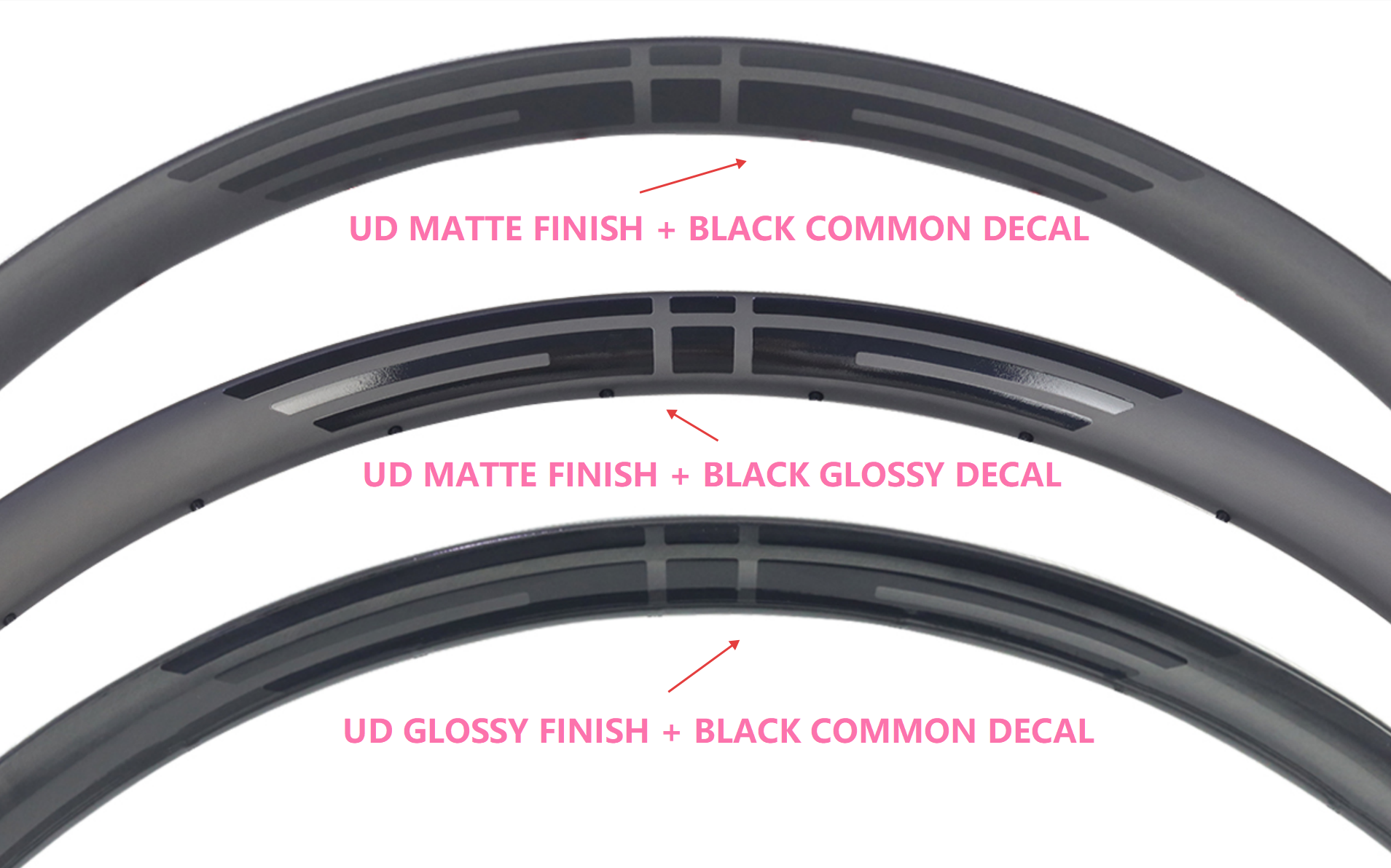 The advantages of water-slide decals include durability, water resistance, and long-lasting performance. However, the process is complex—each color requires a separate printing plate—and professional application is necessary, making it more expensive and not easily removable. Therefore, water-slide decals are perfect for riders seeking custom carbon fiber rims with detailed, long-lasting designs.